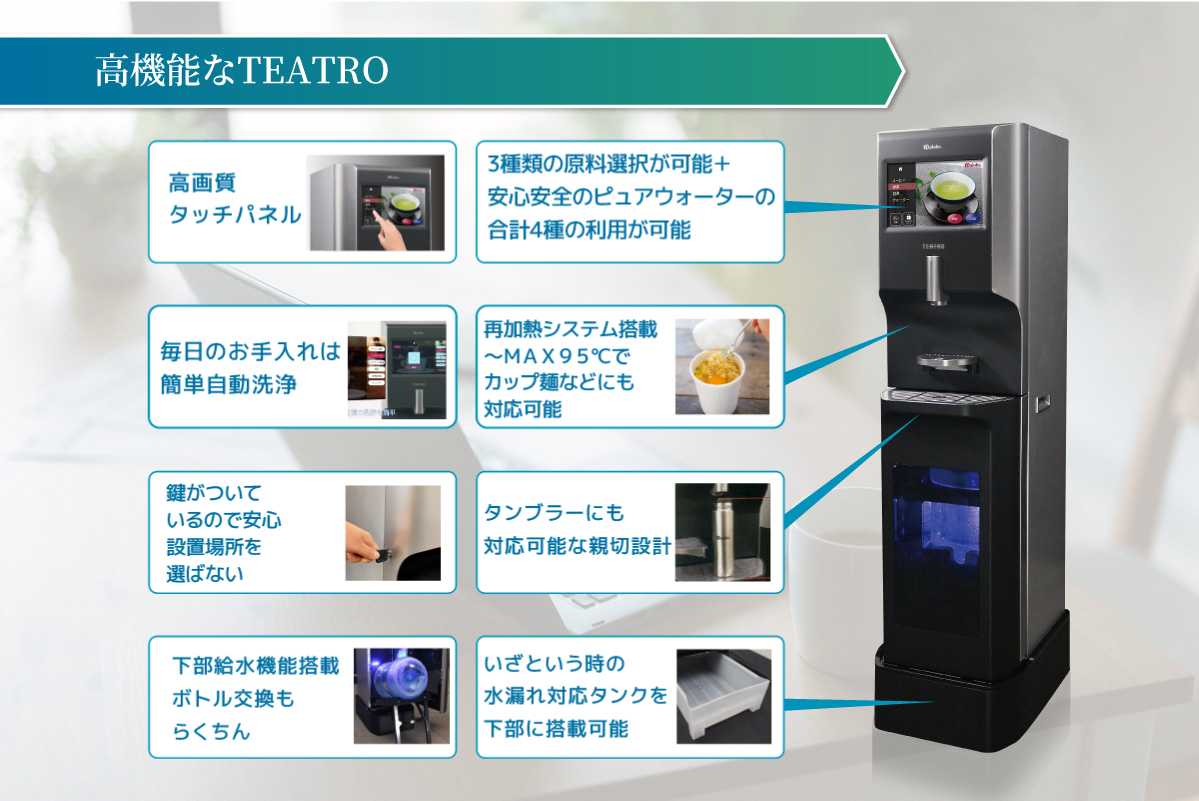 お好みで、お茶も紅茶もコーヒーも温冷ワンタッチ!便利で簡単 ボトルウォーターを使用するので場所を選ばずオフィスに最適な「給茶機」