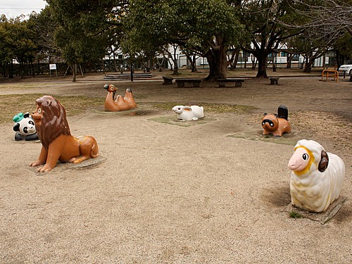 これで園内にあるすべての遊具をご紹介したことになります。…奥に半身が埋まってるかわいそうな子がいるような気がしますが、見なかったことにします。