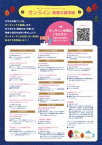 日時:2021年10月22日~11月7日 場所:WEBで限定公開/児島地区内の参加店舗参加費:無料内容・オンラインと参加店舗での開催で 準備しています。 内容については、確定しだい公開・問い合わせ せんい児島瀬戸大橋まつり振興会(児島商工会議所内) 086-472-4450