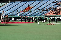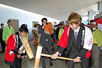 倉敷翠松高等学校吹奏楽部と岡山大学応援部の方によるお祝い