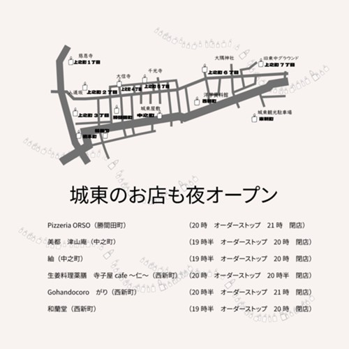 ・当日は城東地区内の下記店舗が夜の営業もしております。
