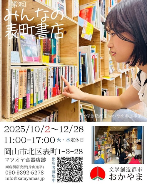 日時:2025年10月 2日~12月28日 11時~17時 ※火・水定休日場所:マツオヤ食器店内 一箱古本市 岡山市北区表町1丁目3参加費:実費内容・一箱古本市を開催!今回で3回目。 マツオヤ食器店を舞台ににした一箱古本市です。 食器、調理器具の「20年ぶりの閉店セール」も開催