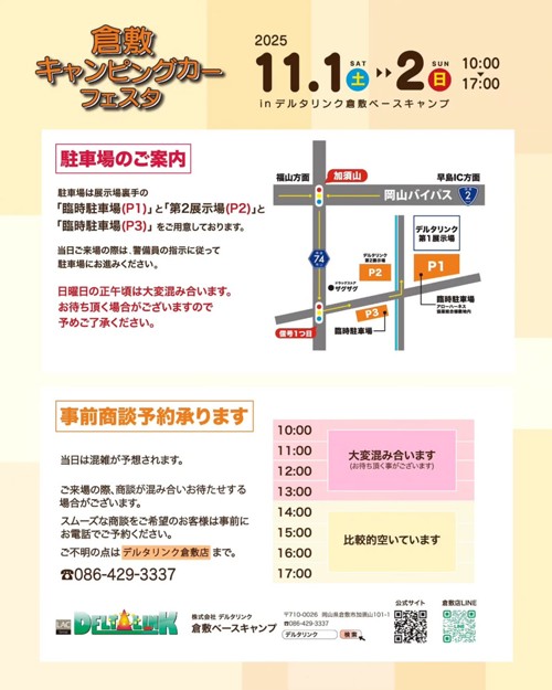 第2展示場(P2)、と臨時駐車場(P3)、をご用意。