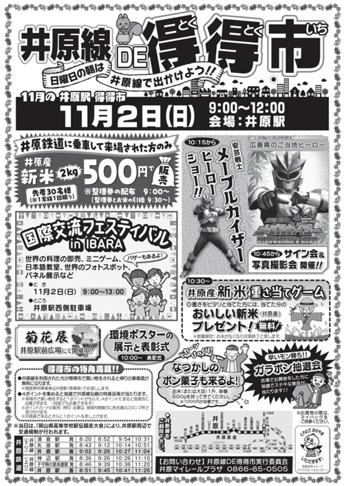 ※井原駅前で「井原線DE得得市」(国際交流フェスティバル)も開催