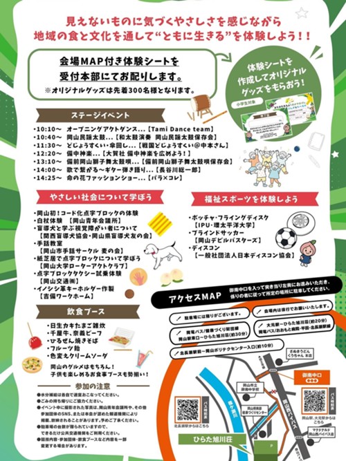 岡山が発祥である点字ブロックを中心とした共生社会を学べるブースもあります。