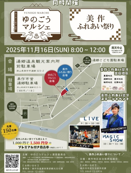 問合せ:美作市産業政策部観光文化課 0868-72-6693(ゆのごうマルシェ事務局)