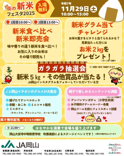 #地域ふれあいイベント #JA岡山 #街の新米フェスタ2025 #北長瀬未来ふれあい総合公園みはらしプラザ