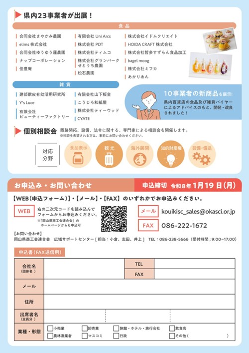 ・岡山県の魅力を全国に広める特産品(加工食品・雑貨)の販路拡大と、