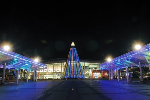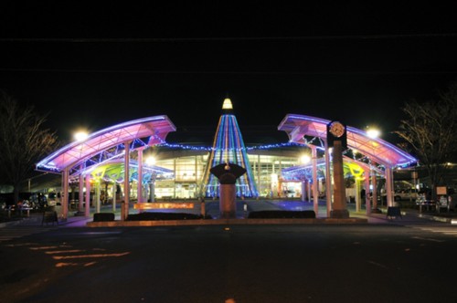 井原鉄道の井原駅から続く駅前通りをライトアップされています!