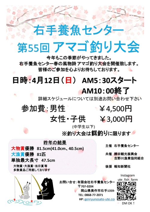 渓流公園「右手養魚センター」で開催される釣り大会。