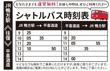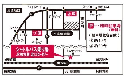 公共:鴨方駅(北口)から無料シャトルバス