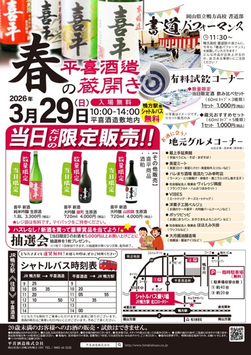場所:平喜酒造(株) 0865-44-2122