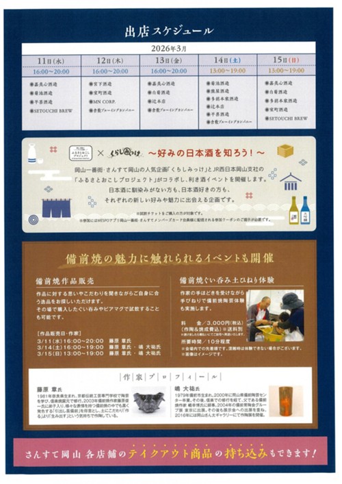 酒蔵や備前焼作家と有料試飲や作品販売など対面での交流を通し、