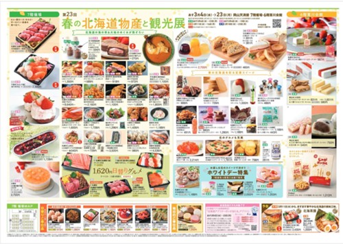 日時:2026年 3月4日(水)~23日(月) 10時~19時半閉場 10日(火)、16日(月)、最終日 23日(月)は17時閉場 17日(火)は会場準備日のため終日閉場場所:岡山天満屋 7階催場、6階葦川会館 086-231-7111 岡山市北区表町2丁目1番1号参加費:実費内容・海の幸を贅沢に盛り込んだ海鮮弁当、 人気の惣菜や海産物など、 北海道各地の美味が大集合。 #岡山天満屋 #北海道物産と観光展#ワインに恋して