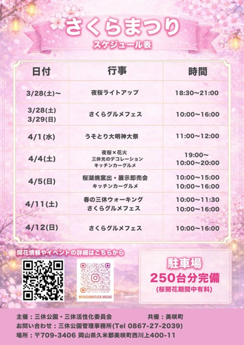 ・問合せ:三休公園管理事務所 0867-27-2039