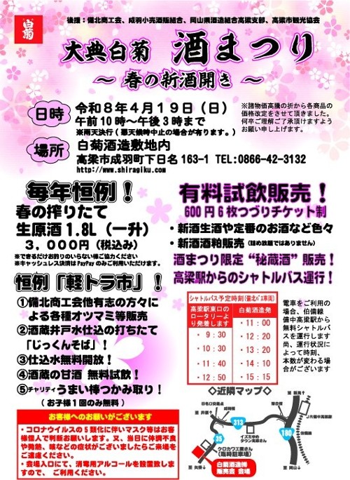 白菊酒造の春イベント【大典白菊 春の酒祭り】の開催。