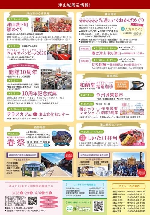 ・問合せ:津山さくらまつり実行委員会事務局 0868-22-3310