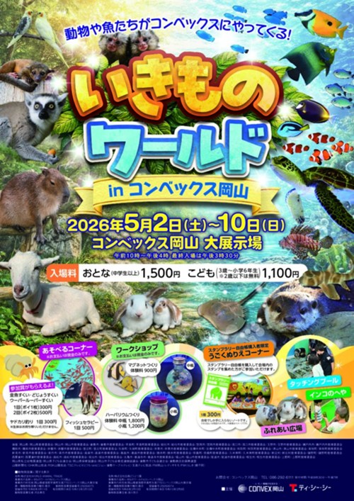 今年のゴールデンウィークは、コンベックス岡山が巨大な動物園&水族館に大変身!