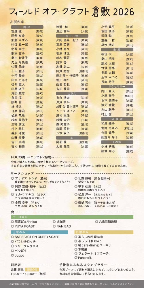 ・問合せ:フィールド オブ クラフト 実行委員会 070-5302-8207