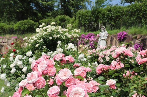 満開時には約100品種1,000株のカラフルなバラをご覧いただけます。
