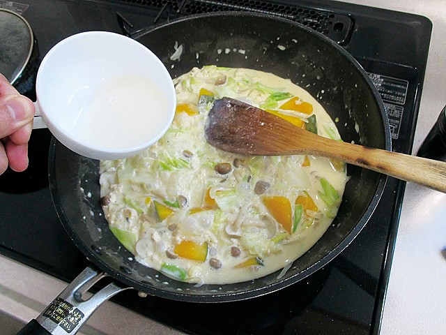 <かぼちゃとキャベツの豆乳グラタンの作り方>