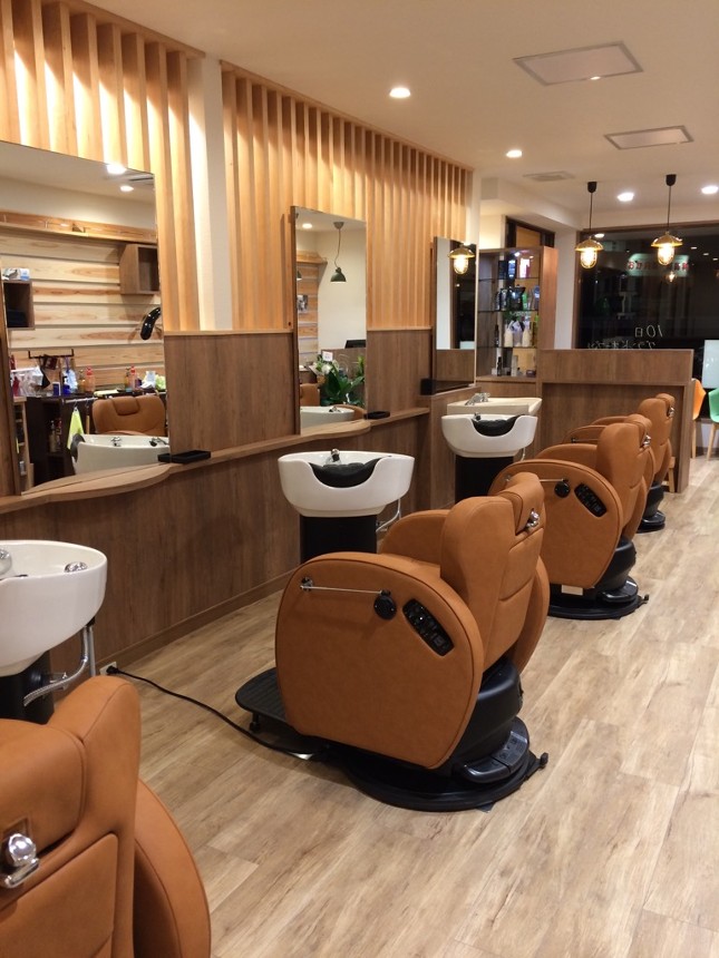 3台は後ろ向きでシャンプーします。1台はカットオンリー専用です。