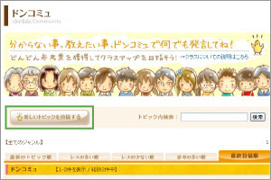 レスの投稿は、該当のトピックの[このトピックへレスを投稿]からコメントを投稿することができます。レスを投稿される方は、できる限り優しい言葉でわかりやすく答えてあげてください。