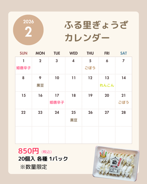 大人気ふるさとぎょうざの2月のスケジュールです。