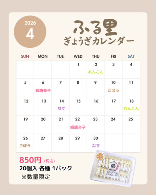 大人気ふるさとぎょうざの4月のスケジュールです。