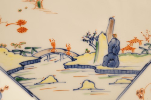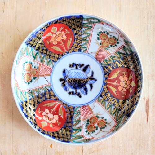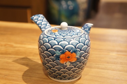 染付の青い絵付けの上に、赤などで上絵付けをして華やかな仕上がりになっています。