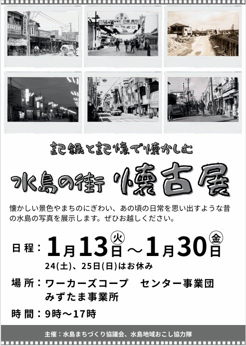 あの頃の日常を思い出すような昔の水島の写真を展示しております。