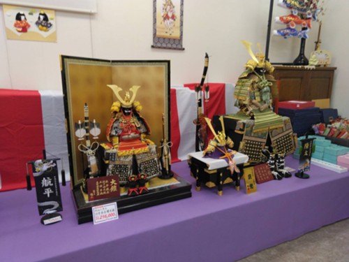 なんば人形では、端午の節句に向けた五月人形の展示が始まっております
