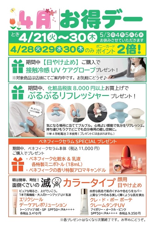※5/3(日)、4(月)、5(火)、6(水)お休みさせていただきます。