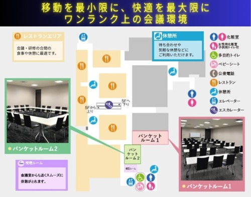 会議や研修の合間も快適にお過ごしいただける利便性が特徴です。