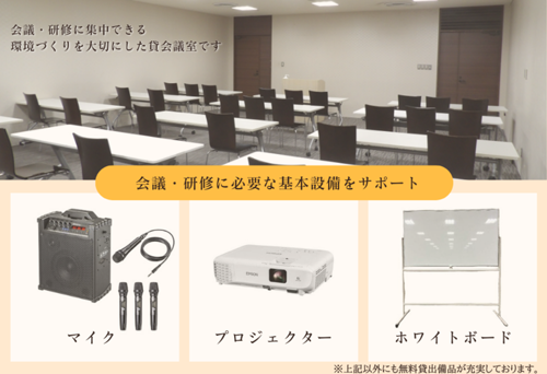 企業研修・セミナー・講演会に最適な快適空間を、抜群の立地で提供します。